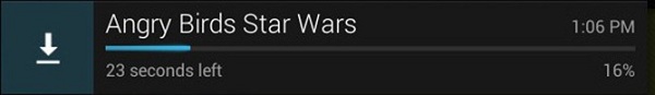 Tiempo restante, como si de Windows de Sobremesa se tratara, en las descargas del Play, nos aparecerá el tiempo que queda para realizar la descarga completamente.