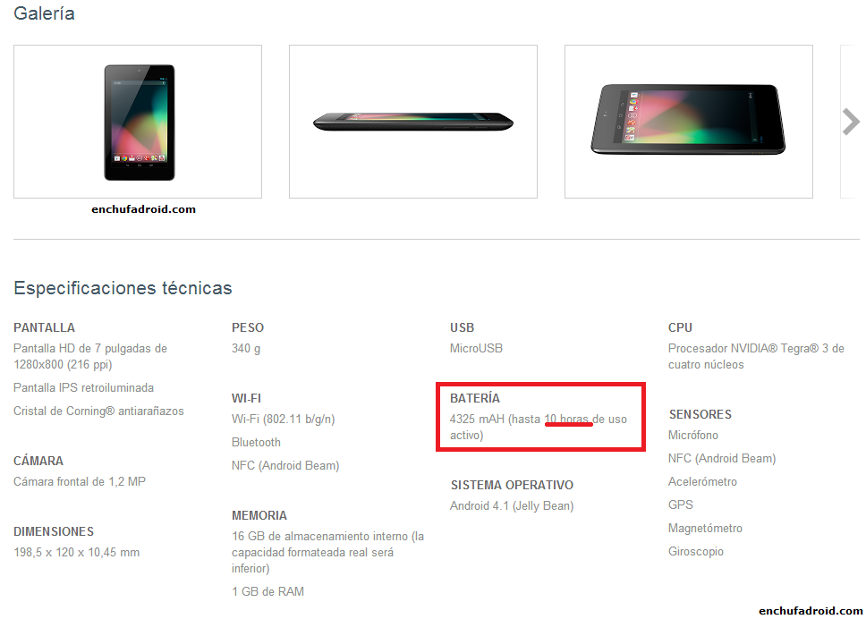 Mejora en la Batería de los Nexus 7