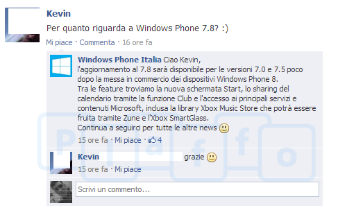 Microsoft en respuesta a un usuario de Facebook que pide información sobre Windows Phone 7.8: